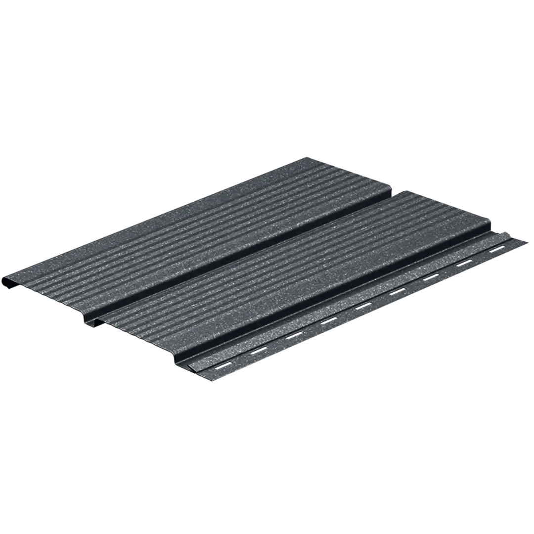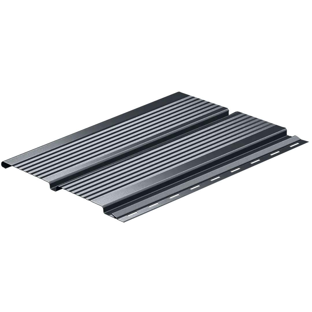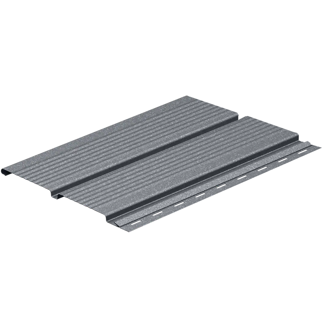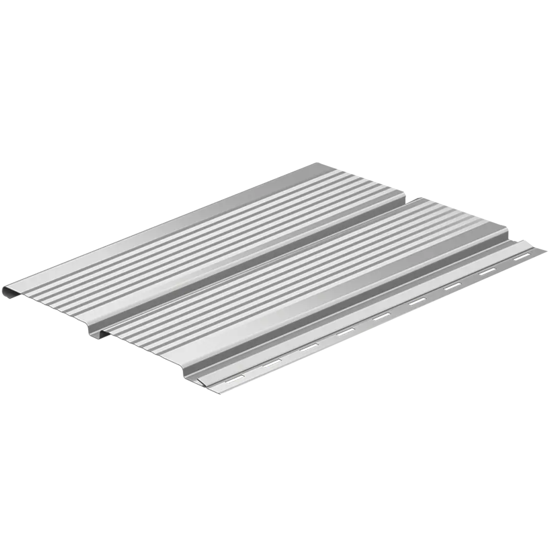 Lambriul metalic micronervurat este conceput pentru închiderea zonei de sub streașină. De asemenea, atunci când se dorește un plus de rigiditate și un aspect mai bine definit se folosește și pentru placarea fațadelor. Nervurile fine integrate în profil întăresc panoul și îi oferă stabilitate suplimentară, fără a încărca vizual suprafața. Modelul rezistă în condiții de variații mari de temperatură sau expunere îndelungată la factorii externi, fiind o soluție de închidere durabilă, sigură și cu întreținere minimă.