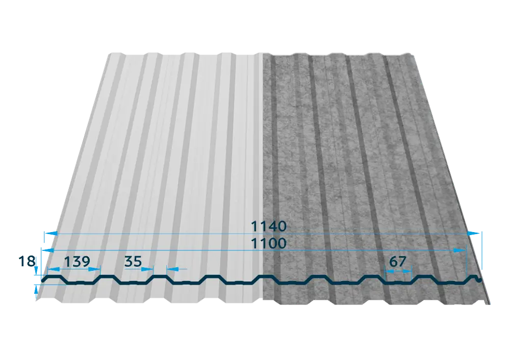 | Înălțime cută trapezoidală | 18 mm |