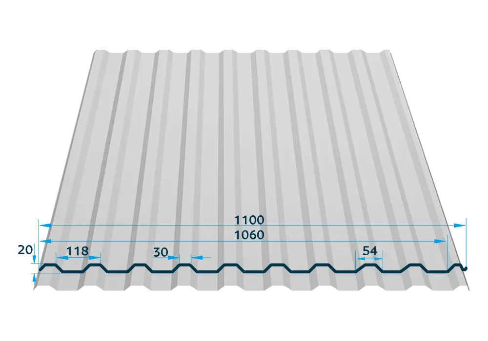 Înălțime profil trapezoidal: 20 mm.