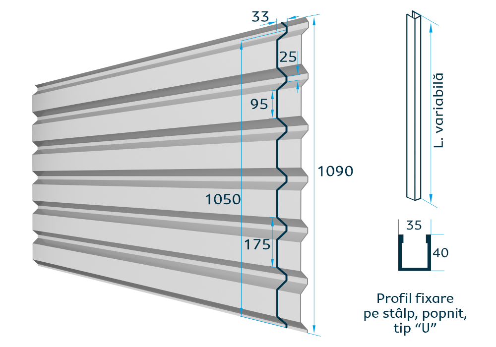 - Profil trapezoidal robust pentru rezistență mecanică superioară;