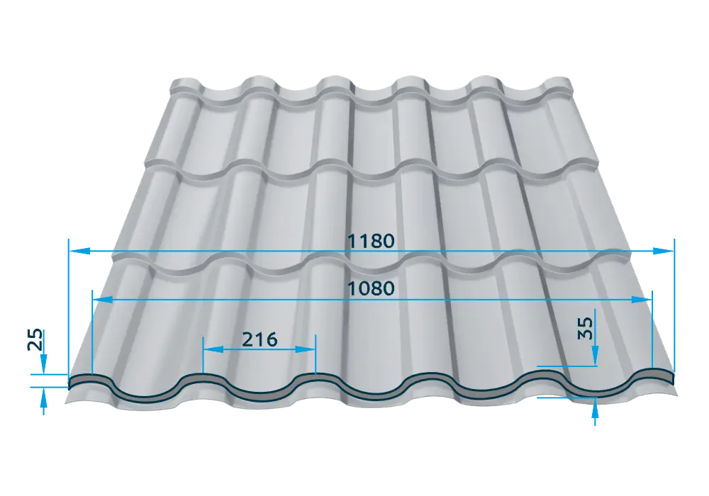 Țigla metalică Regal îmbină profilul înalt, care asigură rezistență mecanică și închidere etanșă, cu un design inspirat din stilul mediteranean. Modelul simetric facilitează montajul din ambele direcții, oferind durabilitate pe termen lung și adaptabilitate la orice tip de proiect.