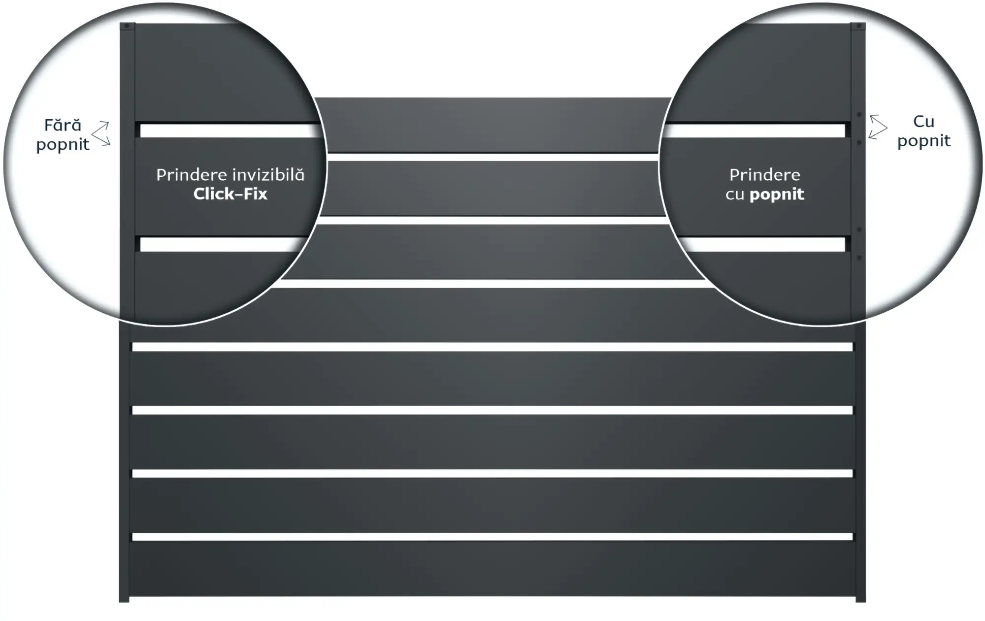 - Fixare solidă atât pentru sistemul Click-Fix, cât și pentru popnit;